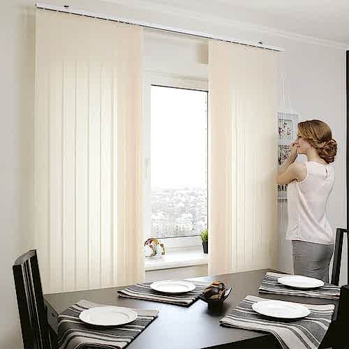 Так как вертикальные ламели способны свободно поворачиваться вокруг своей оси и фиксироваться в любом Pin-Up положении, создавая необходимый уровень освещенности, в помещении не нарушается свободная циркуляция потоков воздуха, и при открытых окнах всегда свежо и комфортно.